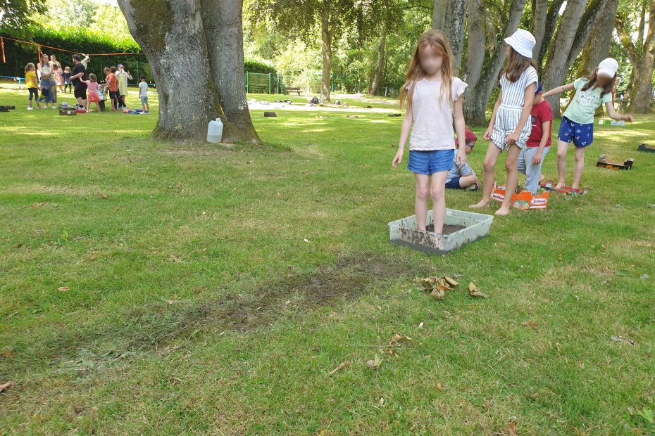 Par une chaude journée d’été, les enfants du centre de loisirs sont venus au parc de Condé-sur-Noireau pour parcourir jusqu’à plus-soif les différents parcours sensoriels présentés.