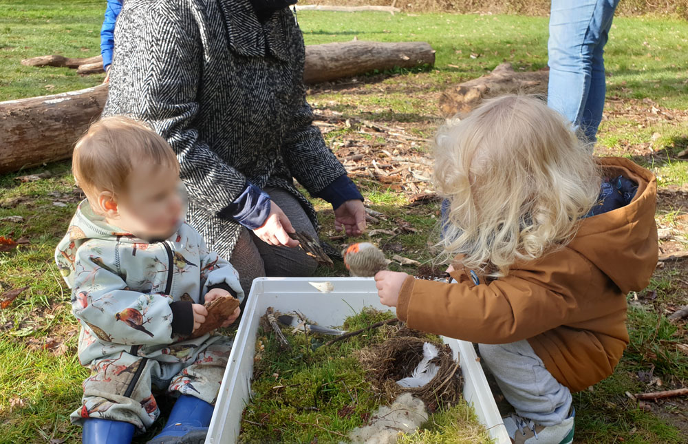 La semaine dernière a eu lieu la première d’un nouveau rendez-vous : des tous-petits accompagnés de leurs ass’mats. Les enfants ont pu profiter de plusieurs activités sensorielles : parcours les yeux fermés, le petit monde du rougegorge (bac sensoriel), exploration des bois et du printemps bourgeonnant… Une chouette énergie et de belles découvertes pour les enfants!