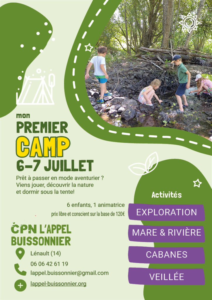 Je renouvelle cette année une proposition de camp court et en petit groupe, pour découvrir « l’esprit camp » : deux jours au mois d’août 2026 à Condé-en-Normandie. Au programme : exploration des environs et construction de cabanes, bricolages nature… Par exemple : bateaux et autres créations en vannerie, fabrication de papier recyclé ensemencé, bijoux et instruments de musique à partir d’éléments naturels…