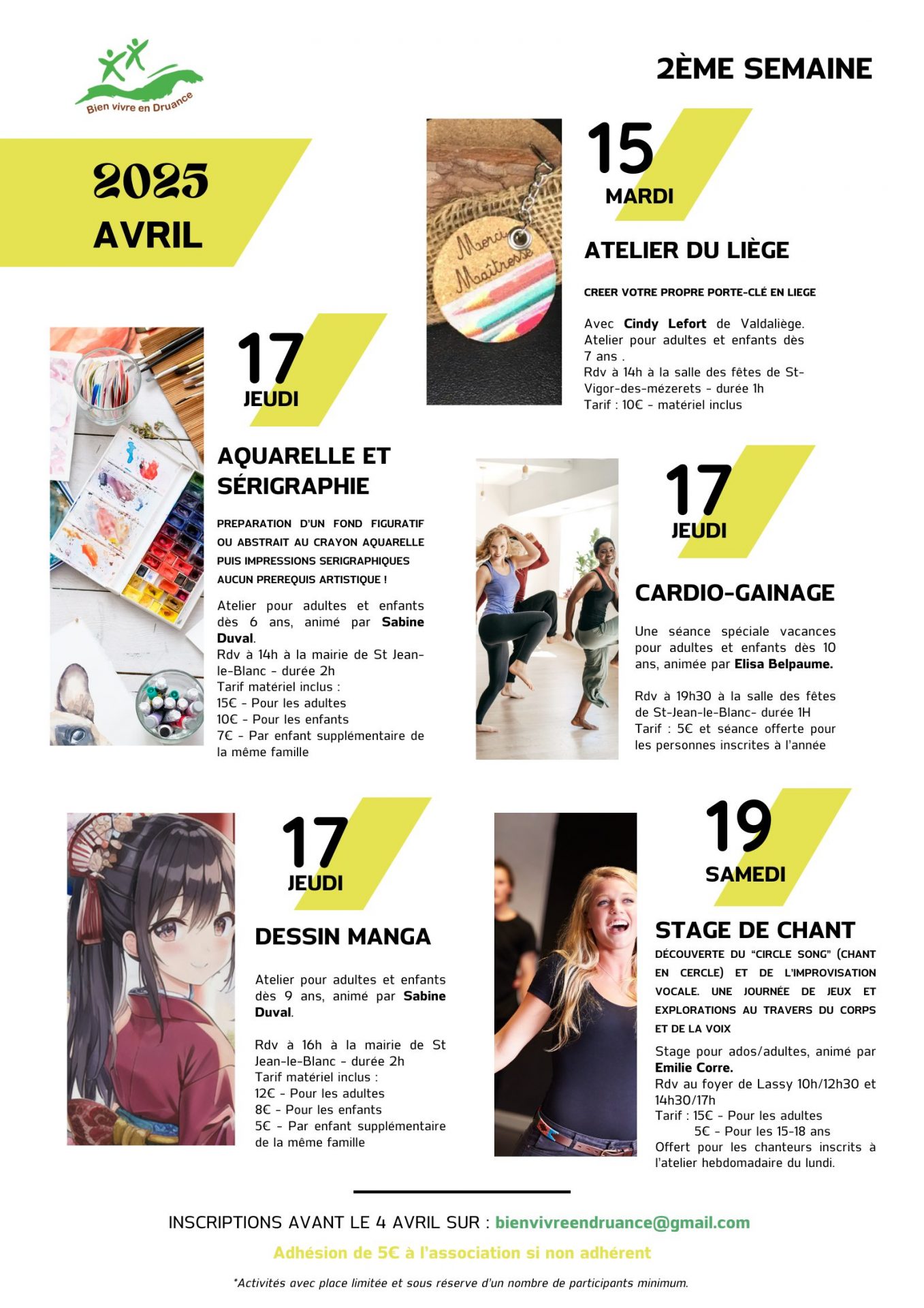 Cette animation est proposée par l’association Bien Vivre en Druance, qui propose toutes sortes d’activités pour les habitants du bassin de la Druance dans le sud Calvados. Découvrez le programme complet des vacances ci-dessous.